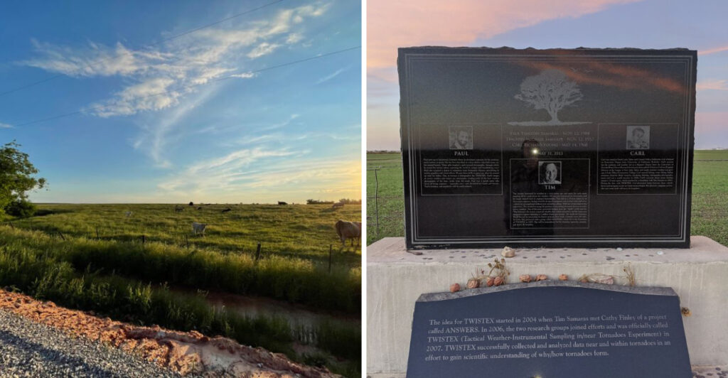 Out on a quiet dirt road near El Reno, Oklahoma, surrounded by wide open fields and endless sky, sits a memorial that storm chasers from around the world come to visit. It marks...