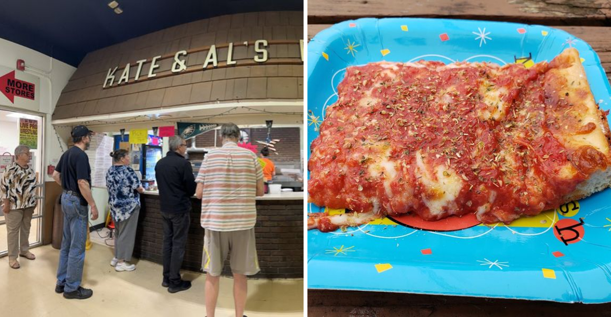 This style of pizza has deep roots in the South Jersey and Trenton area, where tomato pies have been a regional staple long before social media foodie culture made them trendy. Kate and Al’s has been doing it since the 1950s, which means they were perfecting this craft before most of us were even born.