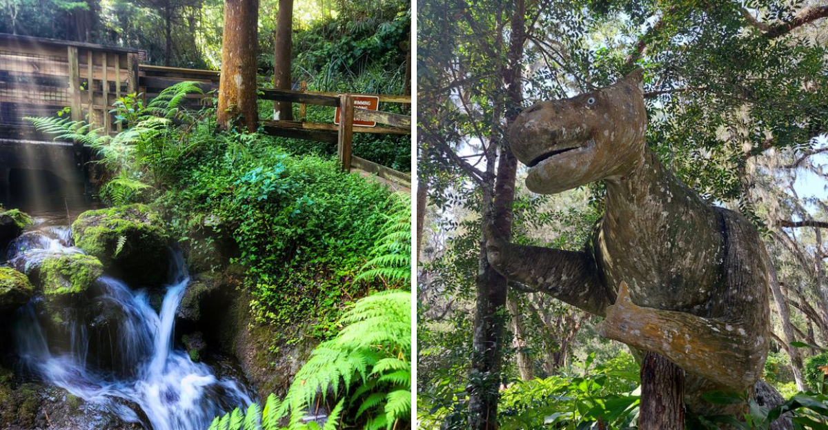 The quirky dinosaur figures of Bongoland linger within Dunlawton Sugar Mill Gardens.