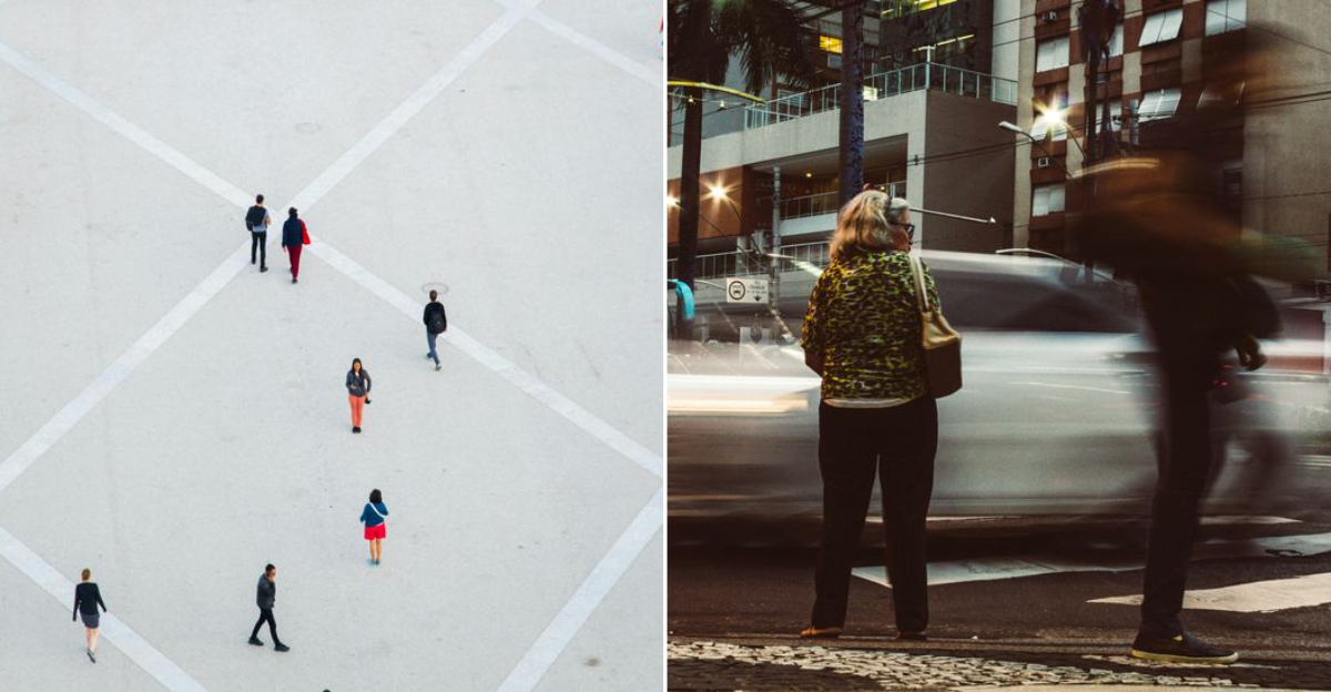 Cross with the group instead of darting ahead, hold the door an extra second for the person behind you.
