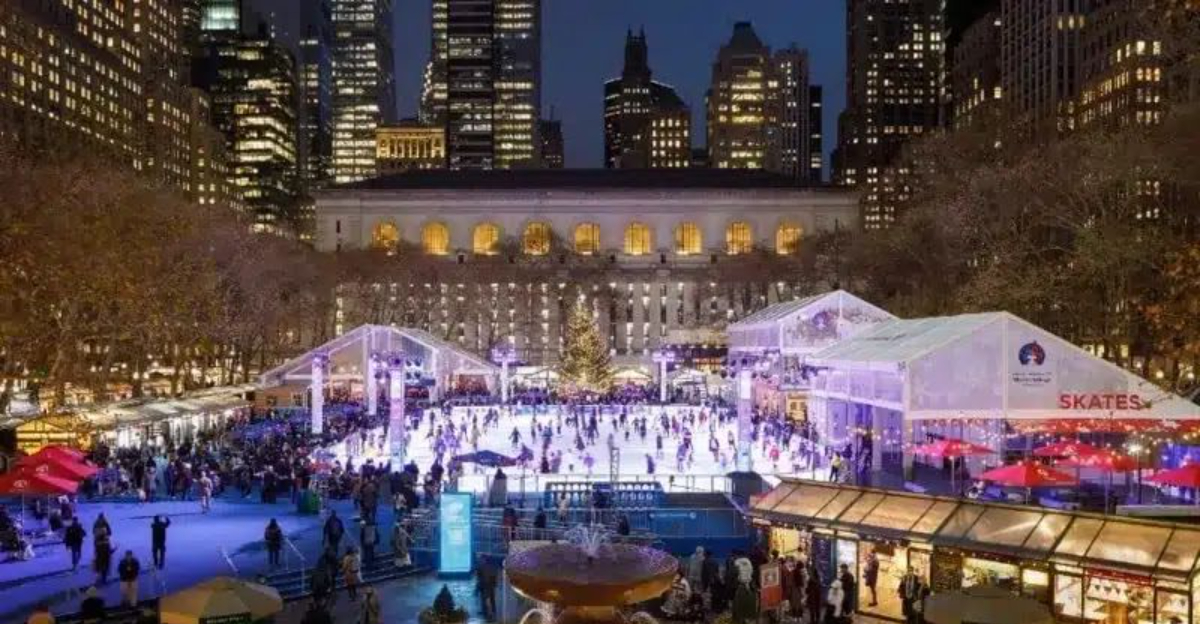 Located at 42nd Street between Fifth and Sixth Avenues, Bryant Park becomes the city’s most magical gathering spot as autumn transitions into winter.