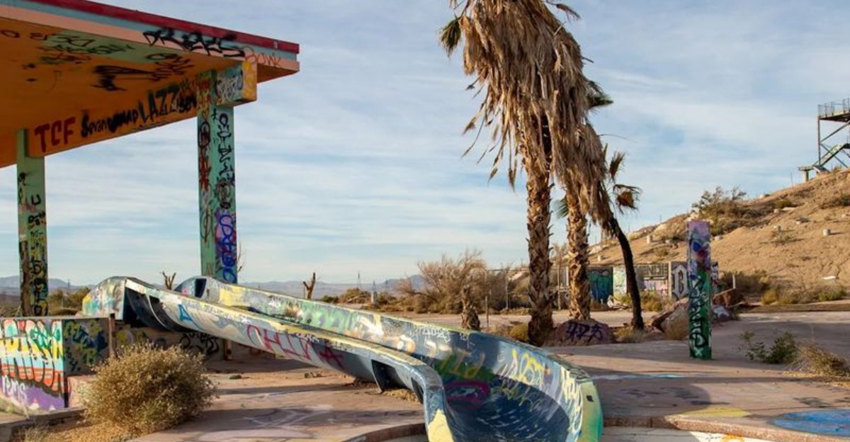 This bizarre mismatch between purpose and location creates a visual experience unlike any other abandoned spot in California. The sight of empty water slides towering over barren desert hills feels like stumbling into a strange dream you can’t quite explain.