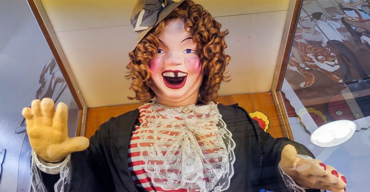 When you walk in, her laughter greets you almost immediately. She stands in a glass case, rocking back and forth, her mouth opening and closing in rhythm with her cackle. The experience is both nostalgic and slightly spooky.
