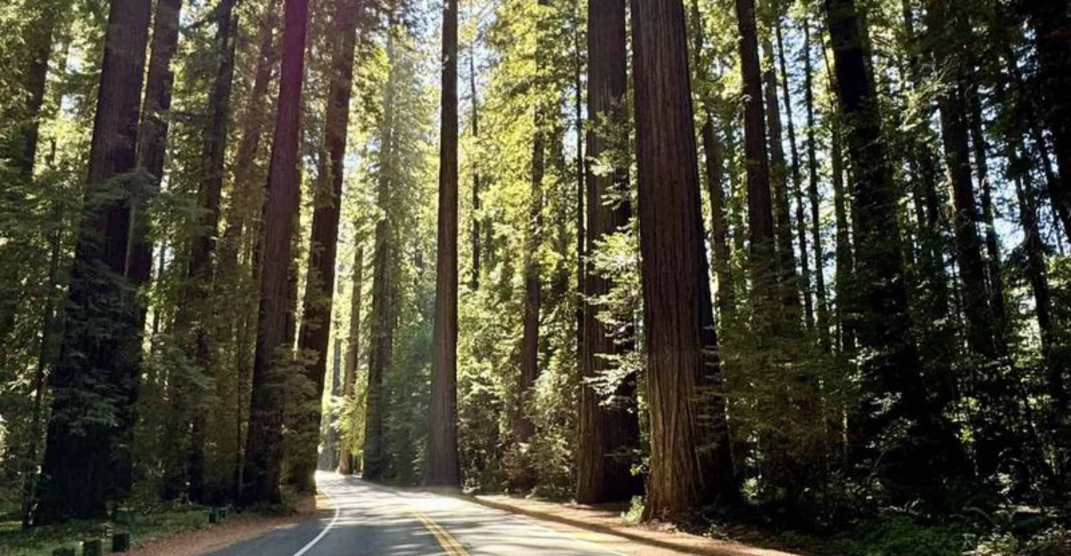 Occasionally, you’ll spot a tiny trailhead and feel the urge to step outside for a short walk among giants. The air seems thicker here, almost damp with history, carrying a scent that’s part earth, part tree, and part memory. It’s easy to lose your sense of scale, especially when your car feels like a toy beside these living skyscrapers.