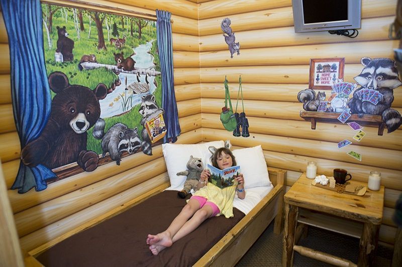 Other indoor activities include the Ten Paw Bowling Alley and Howl at the Moon Glow Golf. Weather permitting, you may want to test your skills at the Howlers Peak Ropes Course. Be warned, your kids will probably find this way more fun than you do. Nearby, and less heart-racing, is the Raccoon Lagoon Play Park, where you can play giant checkers or Jenga, and roast marshmallows at a fire pit.