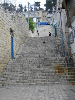 That’s a road. There’s no signs and no stores or houses on it to indicate that it’s a road, no street numbers, but it’s very definitely marked on the map as Ma’alot Olei HaCardom. Such is Tzfat.