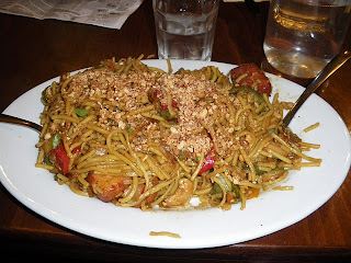 The first place we tried to go for dinner, Café Bagdad, kicked us out saying that they were only serving coffee, even though they were open for another half hour. (This was 8:30pm.) So we went to the next place the people at Ascent recommended, Café Milano. There we discovered that even though Tzfat is mainly known for kabbalah and art, there’s actually another piece to it: cheese. According to the faulty map there was entirely a whole cheese museum! (In actuality, no such place exists.) Anyway, this meant that there were a lot of cheese dishes at Café Milano. Lynley ended up getting something called “halumi salad,” which was actually pasta in teriyaki sauce with cashews, bell peppers, and halumi cheese. I got a cheese platter with roasted vegetables. Lynley very much got the better deal; her halumi salad was amazing. (I know cause I got to try some.) Take a look: