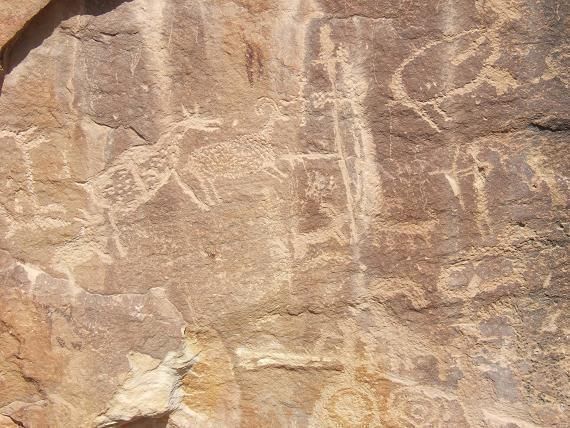 The first sites we stop at are uneventful. “It’s easy to tell the difference between the real stuff and the nonsense.” Barb says over my shoulder, again seemingly reading my thoughts. The Fremont, the Native American people responsible for the majority of the petroglyphs in this canyon, had taken a liking to the darker sandstone located higher up on the canyon walls. Walking back into the smaller canyons, we got better at picking out pictures of human figures, horses and other, sometimes mystical figures.