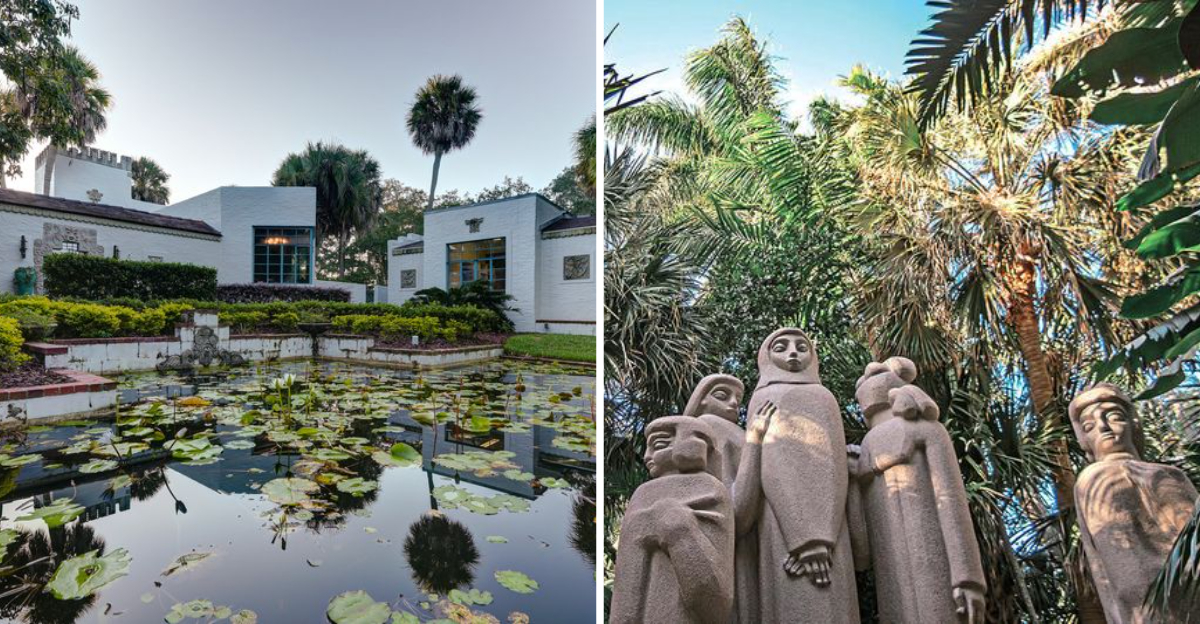 Tucked away in suburban Orlando, this artistic wonderland caught me completely off guard! The Maitland Art Center, built in 1937 by visionary artist André Smith, stands as Florida’s only National Historic Landmark dedicated to art. The moment you step through its gates, you’re transported into a dreamscape where Mayan-inspired reliefs and sculptures emerge from concrete walls.