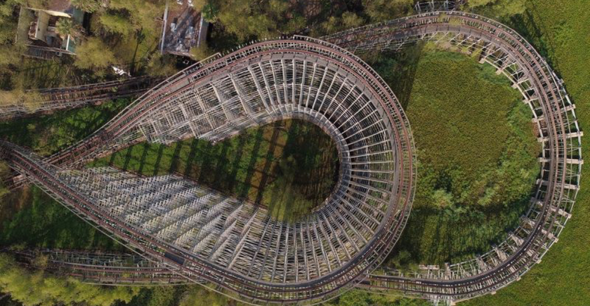From public viewpoints, I could make out faded directional signs and parts of ride station roofs. After rain, reflections revealed more structure in the shadows. Satellite imagery also helps you map the old pathways. Historic brochures line up with what you see on aerial views today.