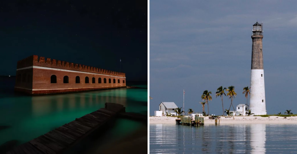 Seven miles west of Key West in the Dry Tortugas sits Loggerhead Key, home to one of Florida’s most isolated lighthouses. When I camped here (with special permission), the isolation hit me immediately – nothing but wind, waves, and the occasional seabird for company.