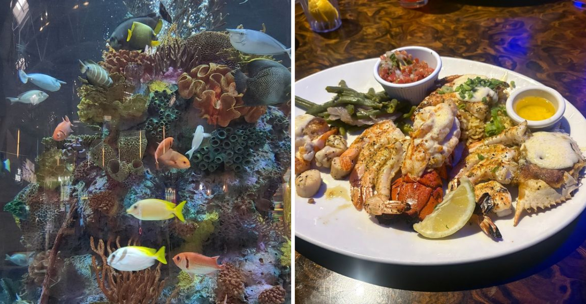 Seafood is the obvious star here, and the restaurant leans into that connection between the tank above and the plate below with a menu that features fresh catches prepared in ways that feel intentional rather than generic. But the options go well beyond fish.