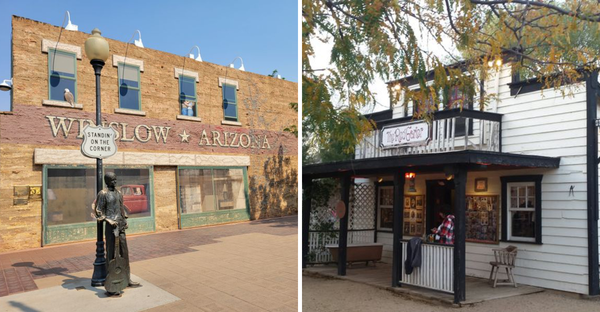 Winslow sits beside a transcontinental rail line where the sound of freight cars becomes part of the soundtrack.