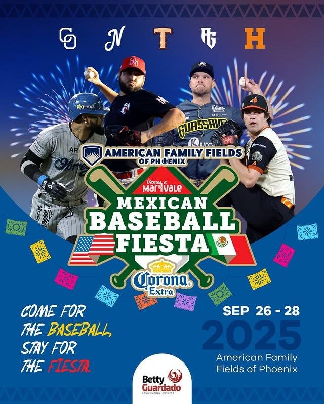 - Mexican Baseball Fiesta in Phoenix and Mesa attracts professional teams such as Hermosillo, Obregon, Mexicali and Guasave. Sept. 26-28.