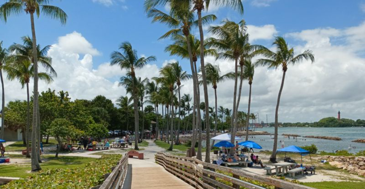 Shaded pathways wind through the park, offering pleasant walks with views of the Jupiter Lighthouse standing sentinel across the inlet.