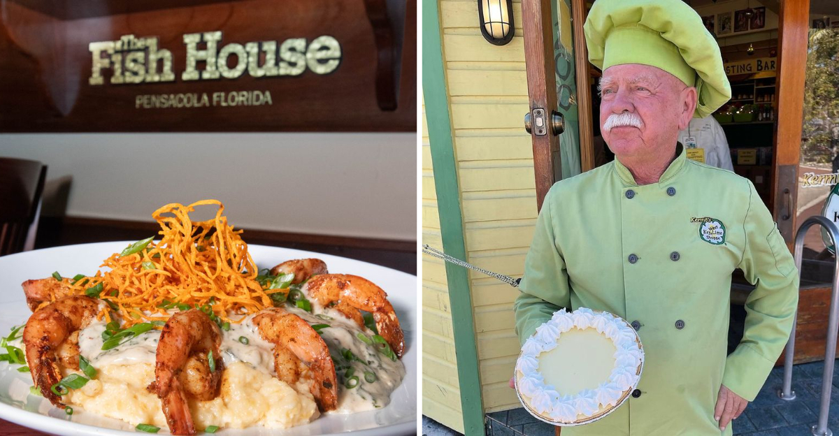 Located on the water in historic downtown Pensacola, The Fish House has become famous for its creative spin on Gulf Coast seafood. The undisputed star? Grits à Ya Ya – a rich, smoky dish featuring blackened shrimp, Gouda grits, and creamy prawn sauce.