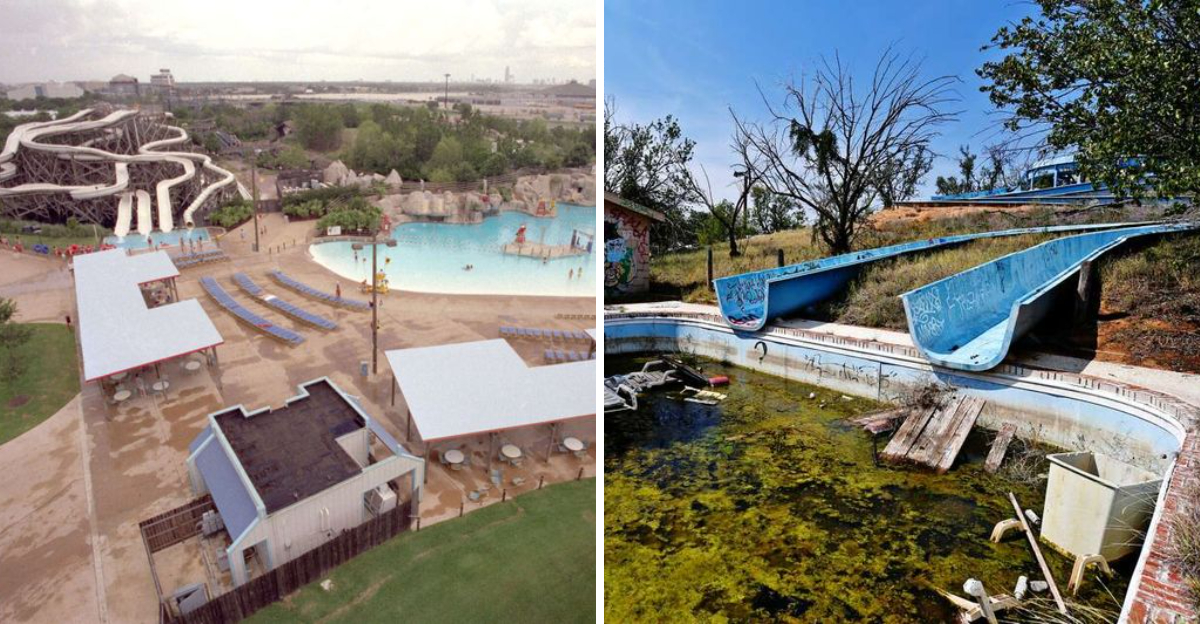 Water Wonderland opened in 1980 near Interstate 20 between Midland and Odessa. It operated successfully through the 1990s before closing in 2002. For two decades afterward, the park sat abandoned—its slides cracked, pools empty, and graffiti creeping across concrete.