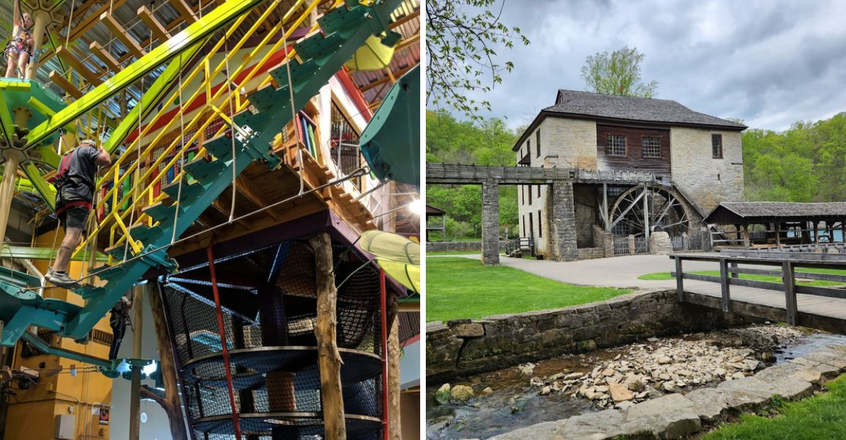 Spring Mill State Park near Mitchell, Indiana, is one of those places that genuinely feels like stepping back in time. The park is built around a restored pioneer village from the early 1800s, complete with a working grist mill, a tavern, a distillery building, and costumed interpreters who bring the history to life without making it feel like a school field trip.