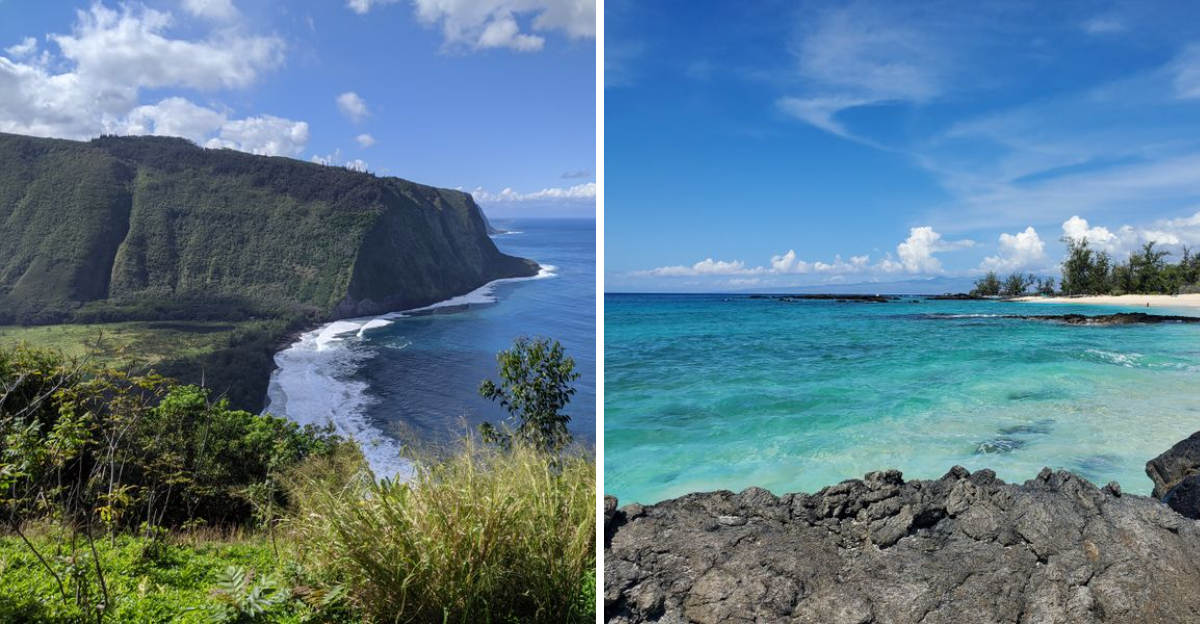 Nestled at the bottom of the Big Island’s most spectacular valley, this black sand beach sits surrounded by cliffs rising nearly 2,000 feet on three sides.