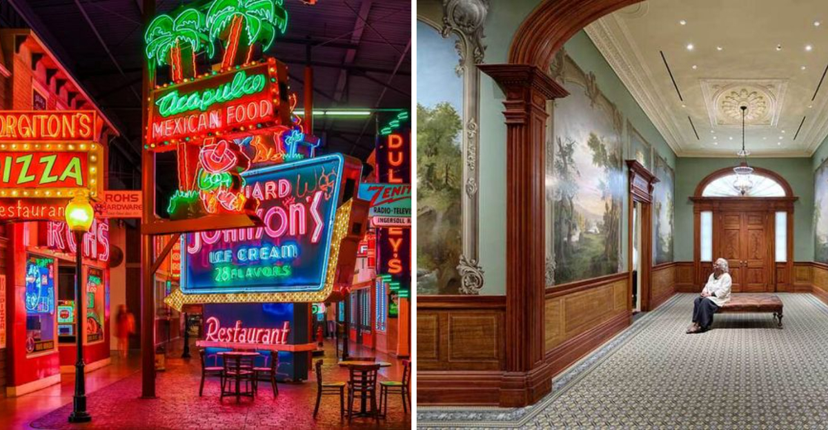 Where else can you wander through a neon-lit paradise of vintage advertising? This Cincinnati gem houses the largest collection of signs in America, and honestly, it’s a photographer’s dream come true.