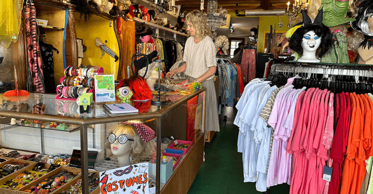 Halloween shoppers find everything from 1970s bell-bottoms to Victorian-style blouses perfect for a ghostly character. The vibe is relaxed and artistic, matching the surrounding canyon community known for its free-spirited residents. You might discover a velvet cape that once belonged to a theater production or a sequined top ideal for a disco queen costume.