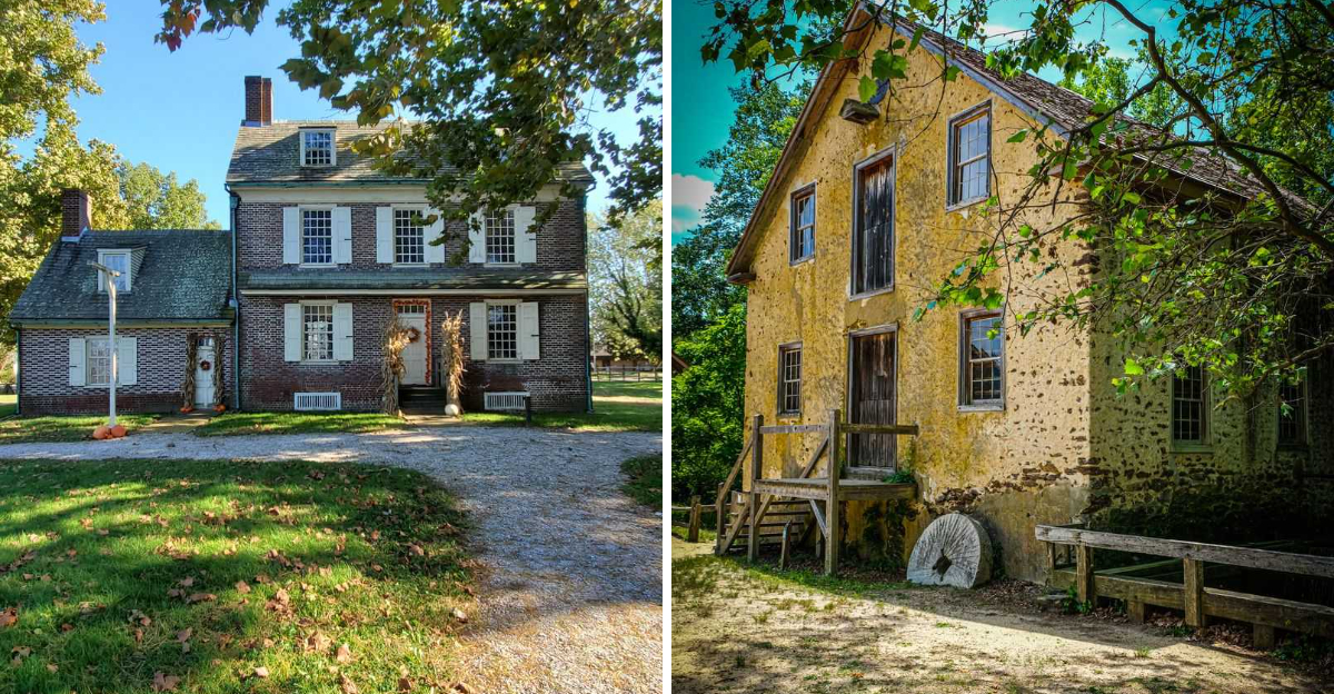 The Hancock House State Historic Site at 3 Front St, Hancocks Bridge, NJ 08038, offers a brick showpiece with patterned initials baked right into the facade.