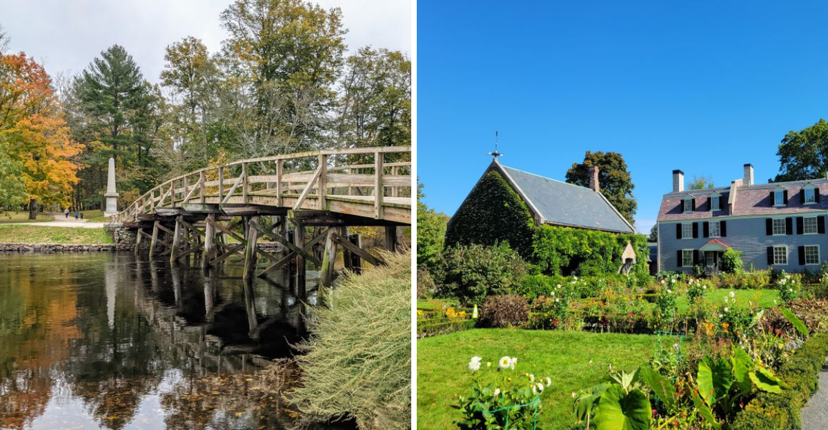 Daniel Chester French’s famous Minute Man statue stands sentinel near the bridge, capturing the determined spirit of farmer-soldiers who left plows to take up arms.