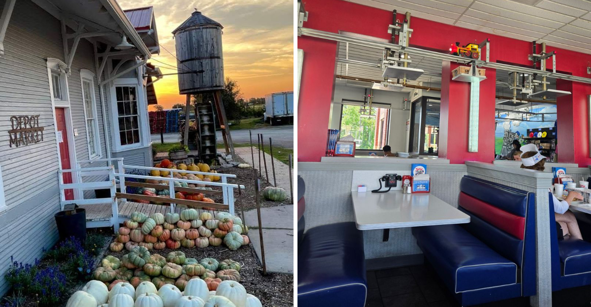 You get the charm of vintage depots, the sound of distant horns, and hearty comfort food that fuels a full day of exploring.