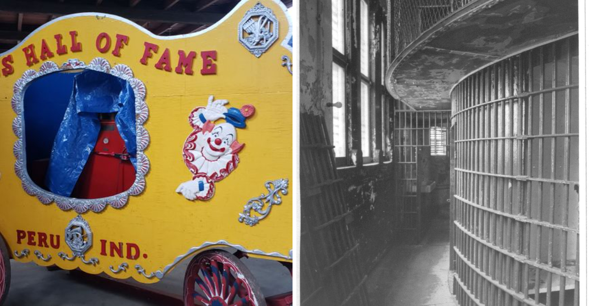 The collection includes vintage circus wagons, costumes, posters, photographs, and equipment that tell the story of American circus history.