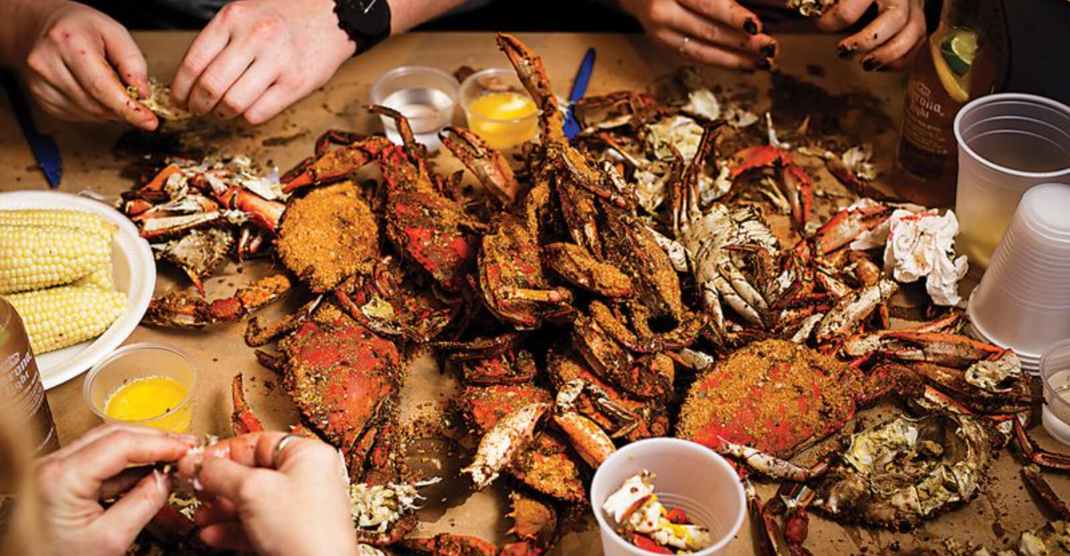 Communal seating breaks down barriers and creates a convivial atmosphere where strangers become friends over a pile of crabs. You will share cracking tips, pass the mallets, and laugh together as Old Bay seasoning flies everywhere. It is casual, unpretentious, and exactly what a true crab house should be.