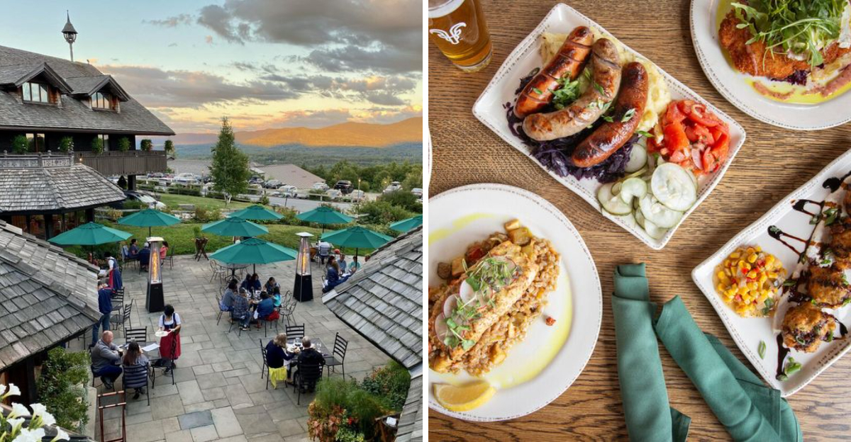 Nestled in the hills of Stowe, Vermont, the von Trapp Family Lodge offers a breakfast experience that feels like a scene from a classic film. The Main Dining Room overlooks the Green Mountains, and morning light spills through large windows, illuminating rustic wood-paneled walls.