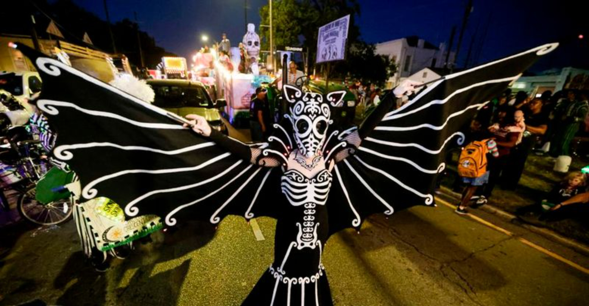 Artists spend months crafting grotesque figures, local legends, and terrifying beasts that tower over the crowds. Parade-goers scramble for unique Halloween-themed throws instead of traditional Mardi Gras beads. The energy is electric, the costumes are outrageous, and the whole experience feels like stepping into a delightfully dark carnival. Only New Orleans could transform Halloween into a parade spectacle this elaborate and entertaining.