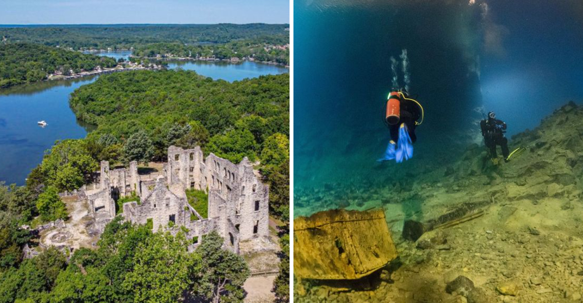 What happens when an abandoned lead mine fills with groundwater? You get one of the world’s most unique diving destinations. Bonne Terre Mine offers crystal-clear water with visibility exceeding 100 feet, revealing mining equipment frozen in time beneath the surface.