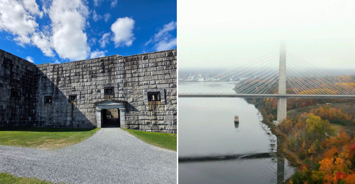 The Penobscot River comes into view, the air feels heavier, and the old stone walls look like they’ve been waiting for visitors for generations.