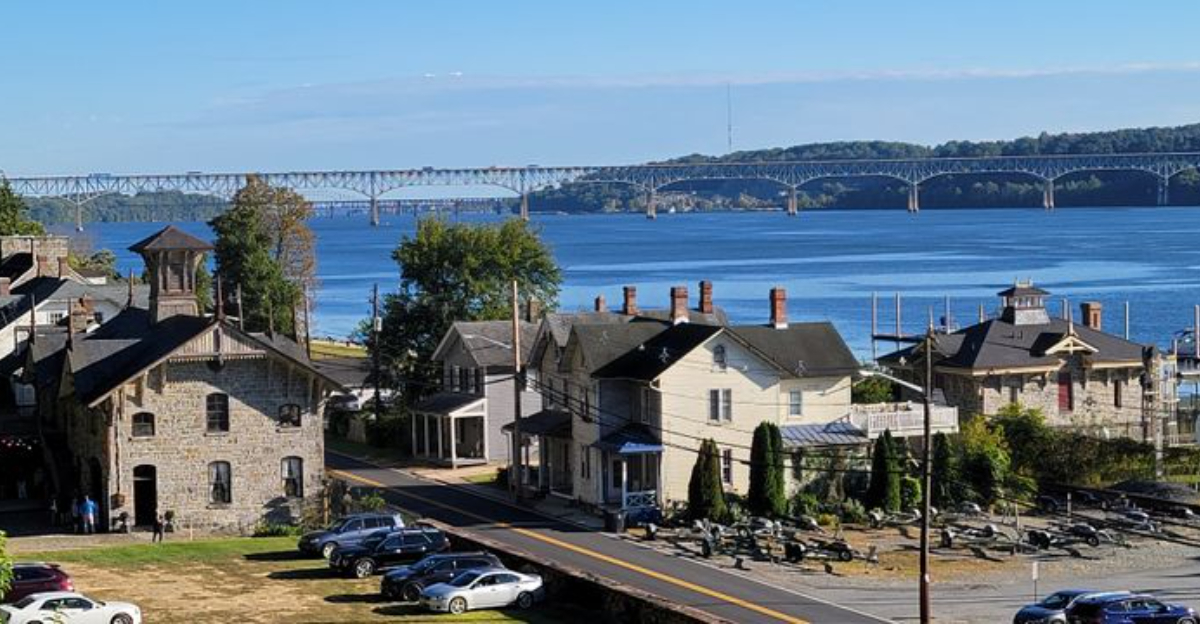 Port Deposit tucks between the Susquehanna and a granite bluff along Main Street, centered near 70 S Main Street, Port Deposit, Maryland.