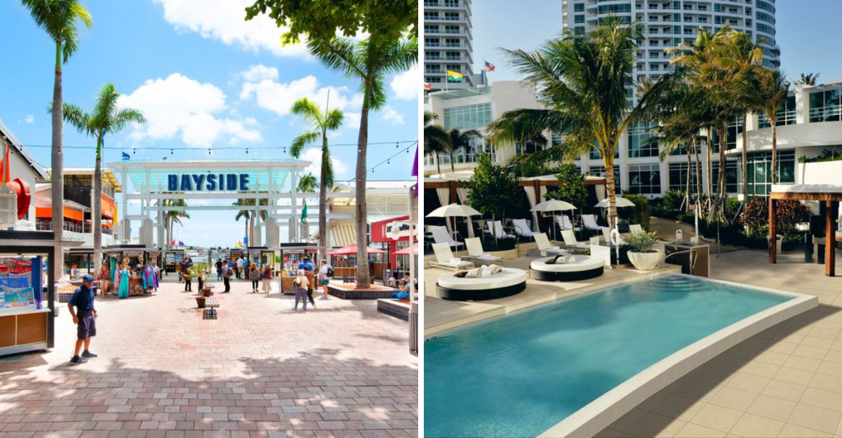 Walking through Bayside Marketplace feels like visiting any shopping mall in America – except with higher prices. Located downtown with waterfront views, this open-air mall attracts cruise ship passengers and tour bus groups by the thousands.
