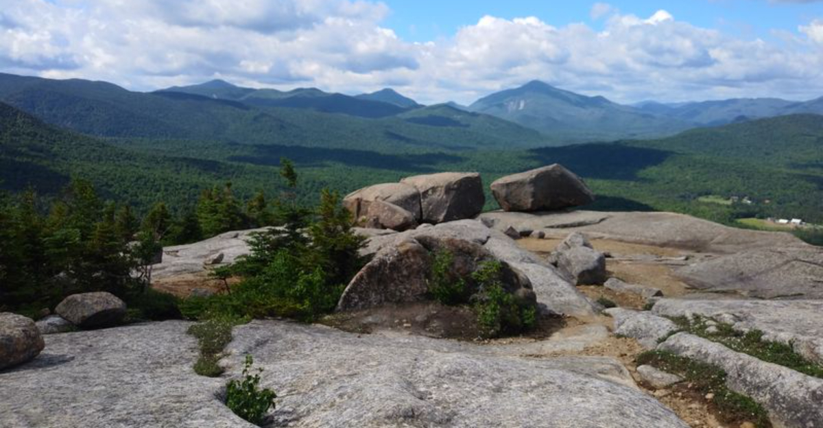 The summit itself features extensive open bedrock with views stretching across Lake Champlain toward Vermont’s Green Mountains.