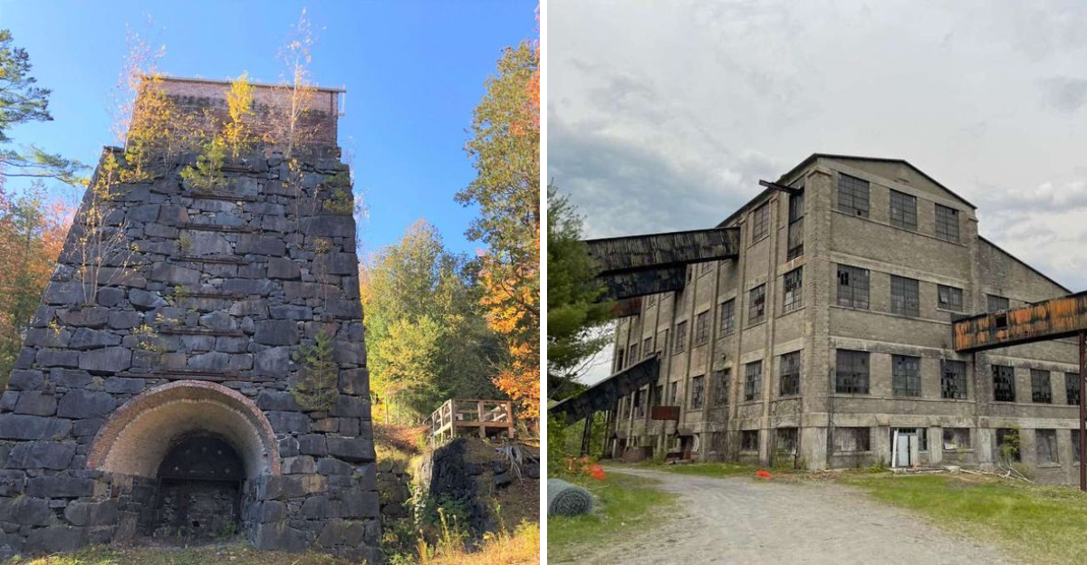Benson Mines, near Star Lake, stands as one of the most visually dramatic stops I’ve found in New York. Once a massive open-pit iron mine, the area feels almost lunar, with steep-sided pits cutting through the forest. The sense of scale here is hard to explain until you see it for yourself.