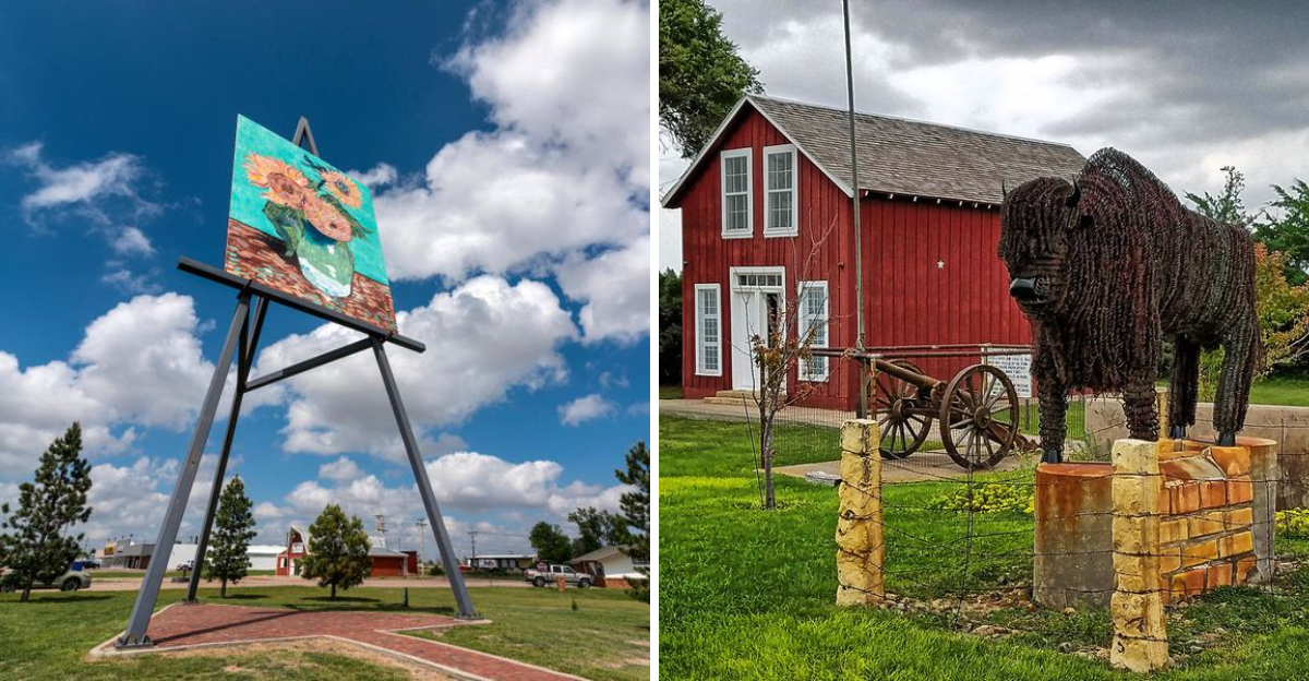 Rising 80 feet above the Kansas prairie, this colossal reproduction of Vincent van Gogh’s famous sunflower painting creates an unforgettable roadside attraction just off Interstate 70 in Goodland. The massive artwork perfectly complements Kansas’ identity as the Sunflower State.