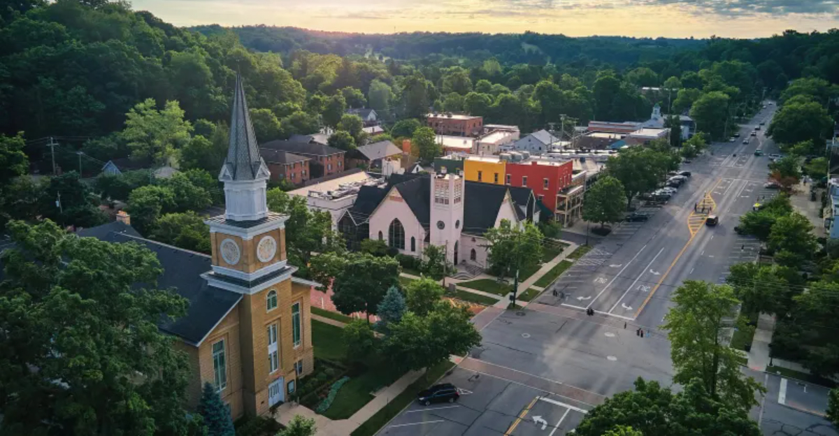 Yellow Springs pairs colorful murals with a compact main street set beside the scenic Clifton Gorge and John Bryan State Park. The heart of town welcomes pedestrians with indie bookstores, galleries, and practical shops that cater to hikers and cyclists.