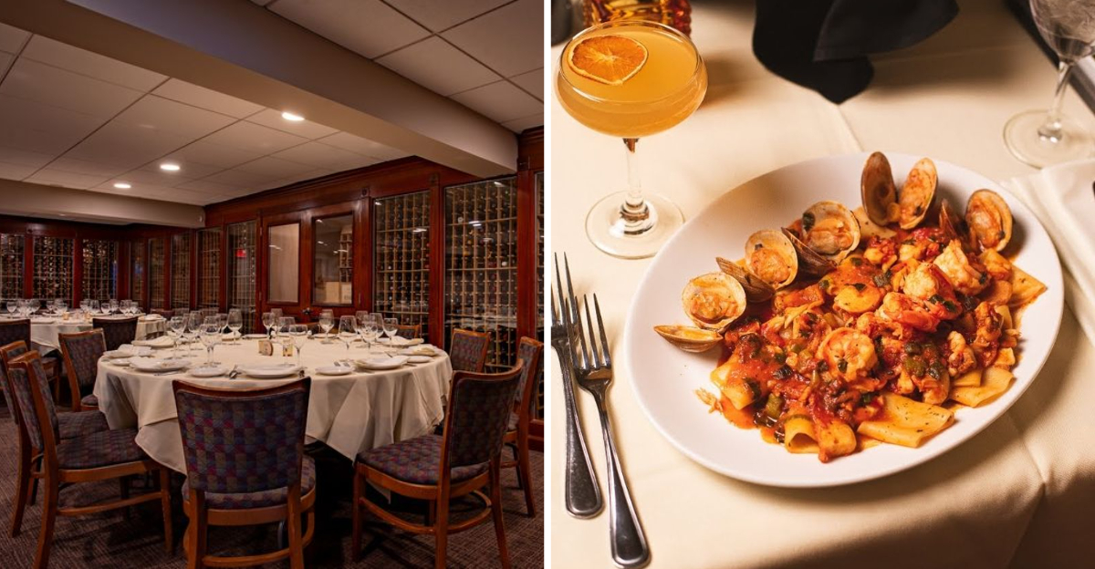 The menu features Northern Italian seafood and homemade pasta served in a dining room that is warm, elegant, and unpretentious all at once.