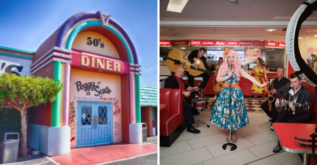 Tucked away in the Mojave Desert along historic Route 66, Peggy Sue's 50's Diner stands as a vibrant time capsule that brings the golden era of American diners roaring back to...
