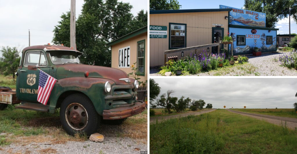 Somewhere along the faded asphalt of Route 66, where the Texas Panhandle meets western Oklahoma, sits a ghost town that refuses to disappear completely.