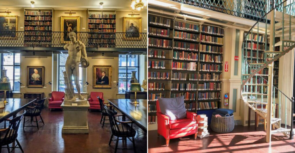 This Rhode Island Independent Library Hides A Grand Greek Revival Reading Room Behind Its Historic Doors