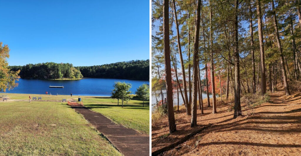 The second I rolled past the entrance, the noise in my head started to quiet down. Tall pines tower overhead, a glassy lake peeks through the trees, and suddenly everything feels...