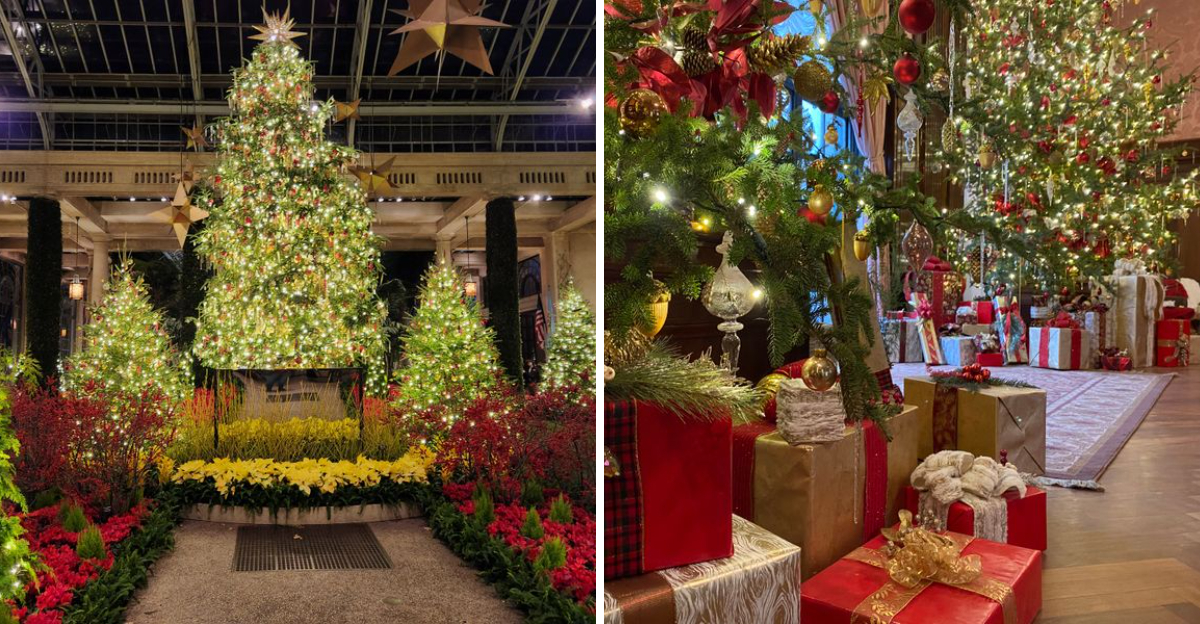 The “A Longwood Christmas” display blankets the outdoor gardens in a constellation of lights that ripple through towering trees and sculpted hedges at 1001 Longwood Road, Kennett Square, Pennsylvania.