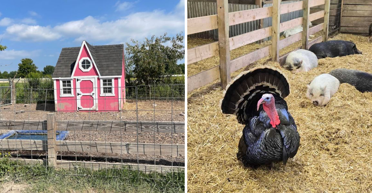 Walking into Oinking Acres feels a little like stepping into a storybook where every character has its own backstory. The sanctuary is home to an impressive range of rescued animals, including pot-bellied pigs, goats, sheep, ducks, chickens, donkeys, turkeys, cats, and even peacocks.