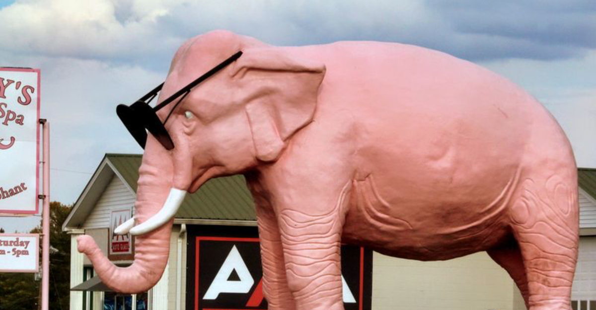 Nothing says roadside Americana quite like a giant animal sculpture, and Ellie the Pink Elephant in Cookeville has a personality all her own. Painted bubble-gum pink and sporting comically large sunglasses, she’s been a fixture since 1986. Whether you’re running errands or on a cross-state trek, Ellie grabs your attention and demands a cheerful pit stop.