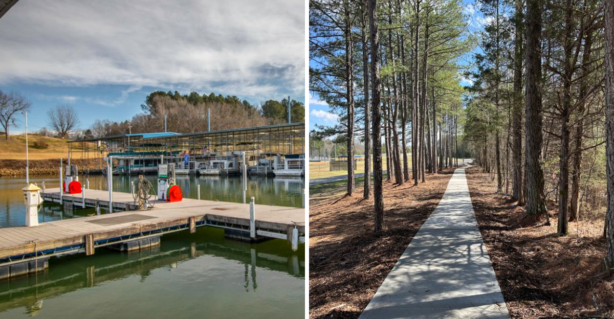 The Tennessee River dominates the landscape here, with wide channels perfect for fishing enthusiasts and nature lovers alike.