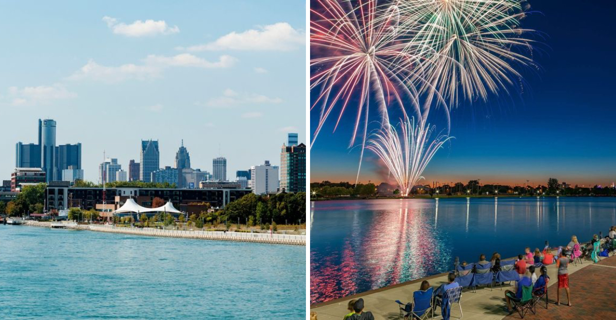 Few riverfronts blend city life and nature like Detroit’s. The Detroit International Riverwalk runs for miles, linking green spaces and the skyline. There are pockets of quiet, even with the city humming just steps away.